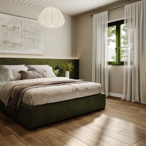 The design uses a harmonious combination of tactile and durable materials that support both aesthetics and long-term use: