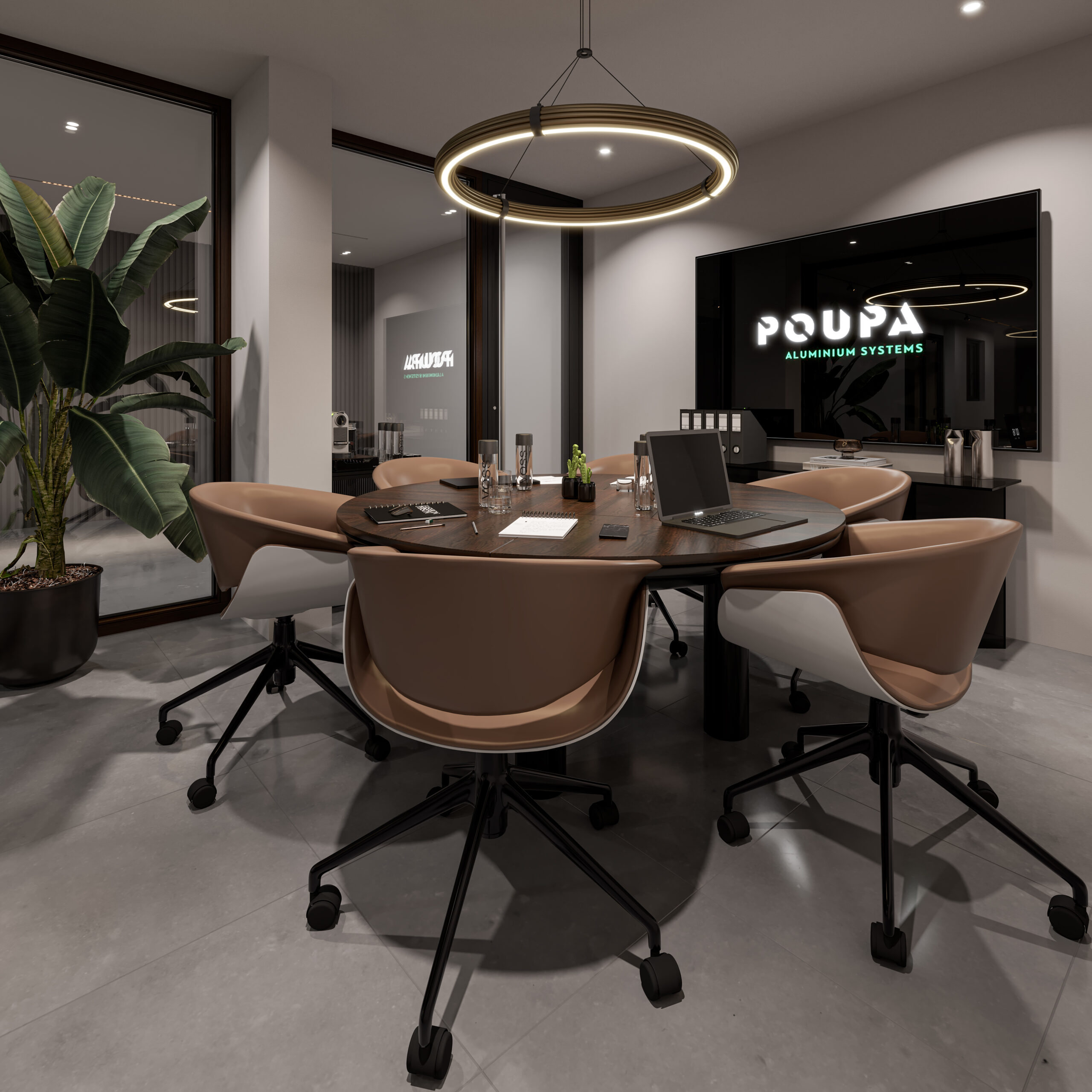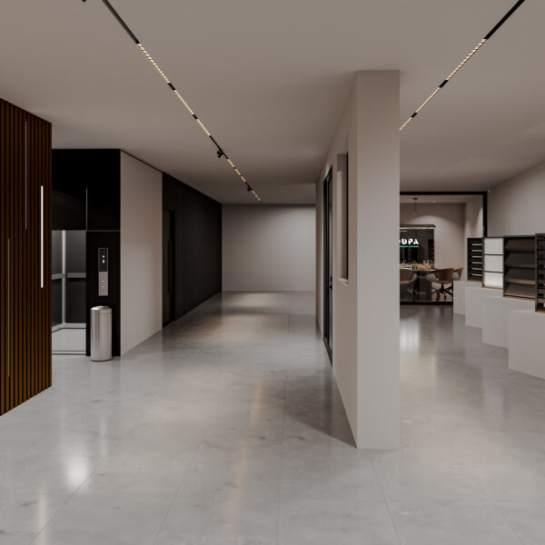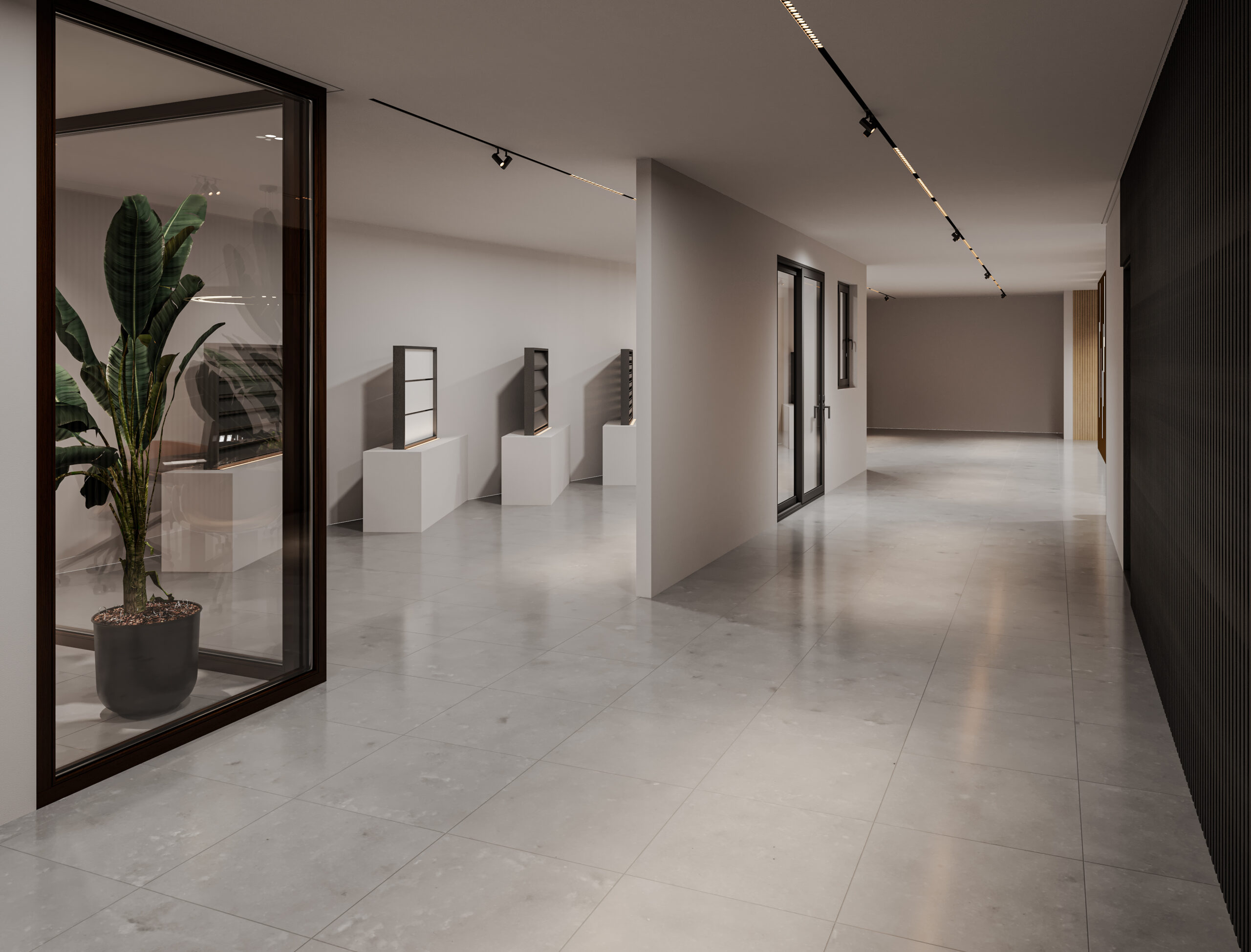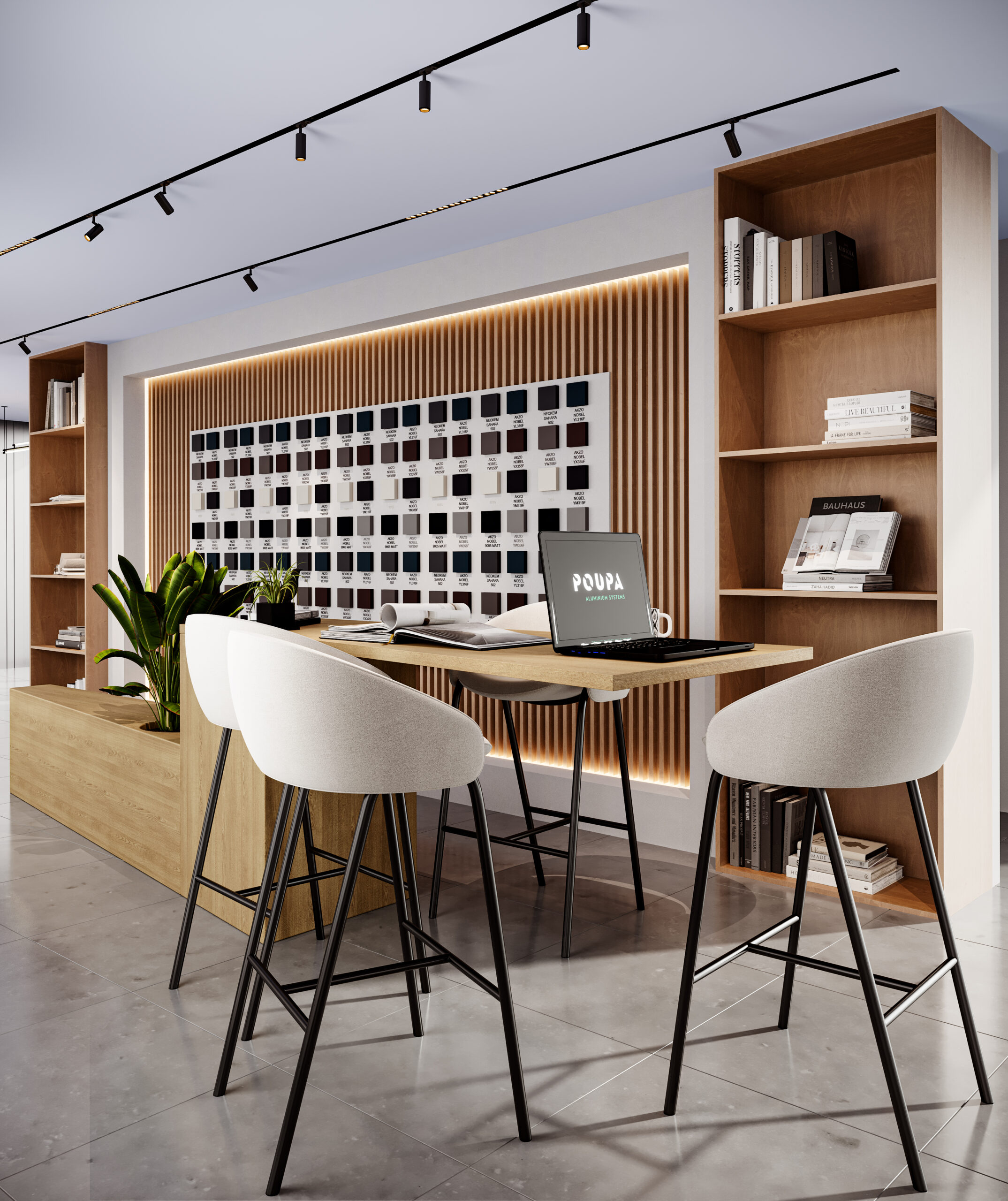 The Poupa Aluminium Nicosia project, designed by Migliore Interiors, showcases a modern commercial interior concept centered around the use of high-quality aluminium elements, functional space planning, and a refined material palette. This project, currently in progress, is presented through detailed 3D visualizations that highlight design intent, material choices, and spatial functionality.