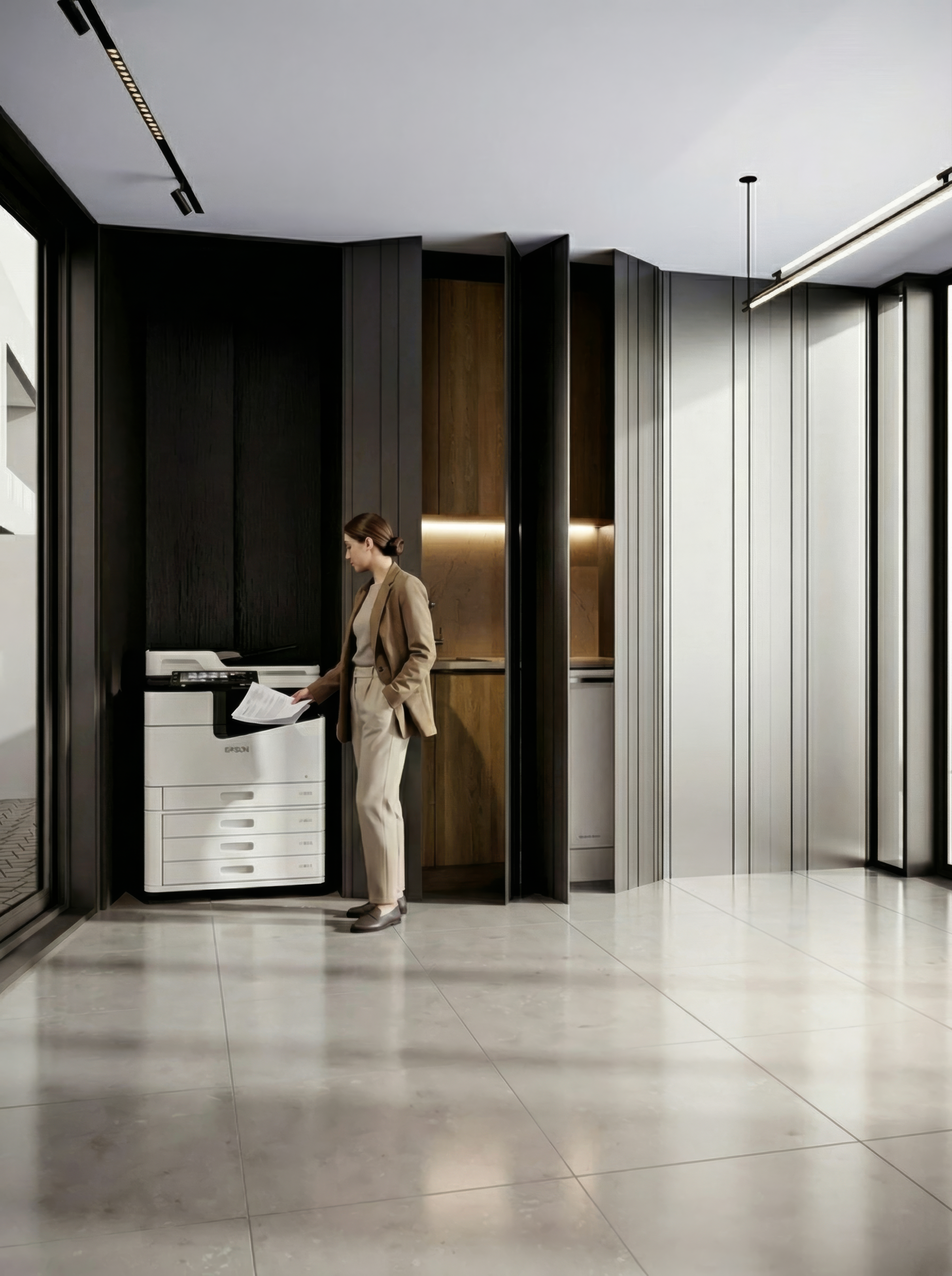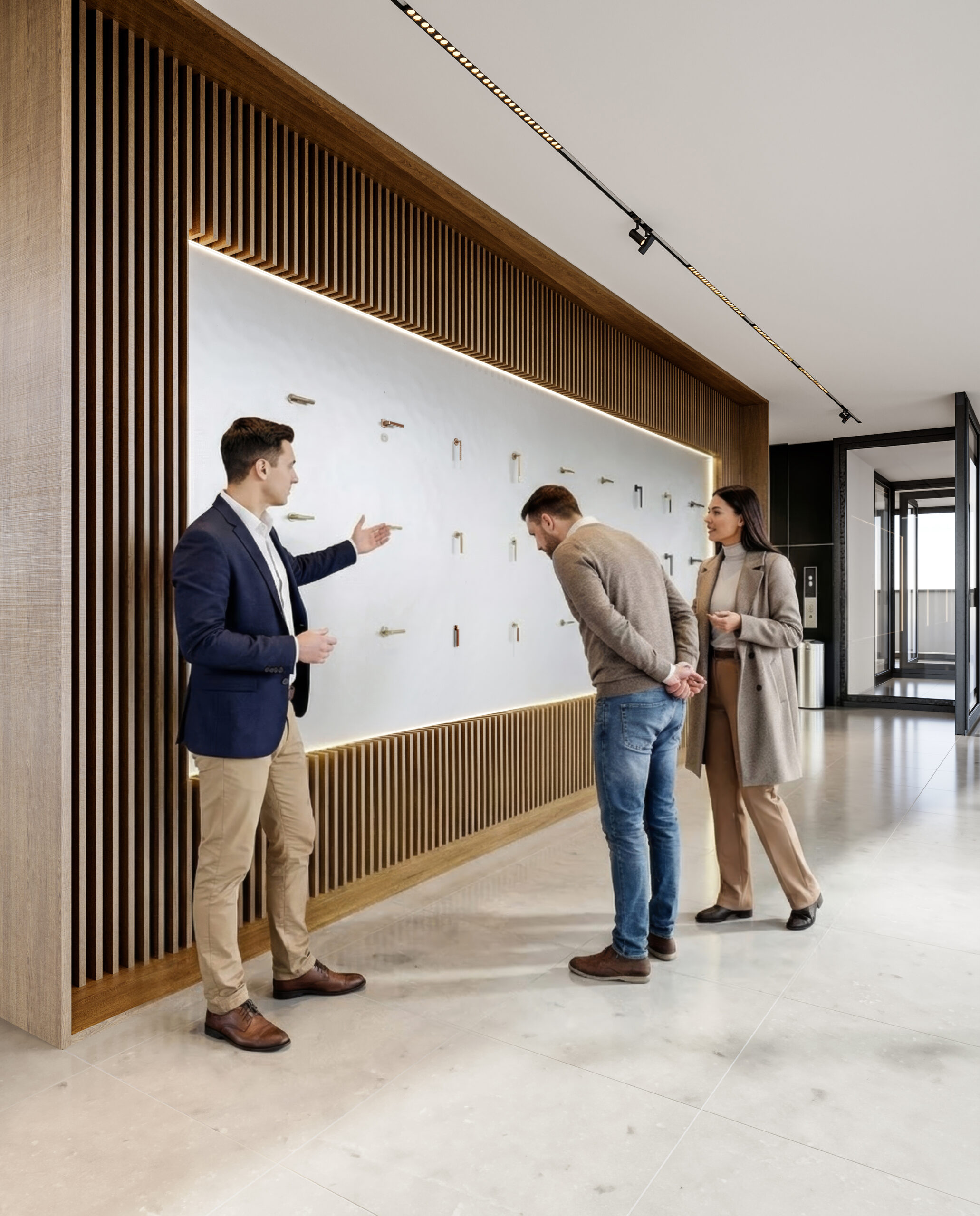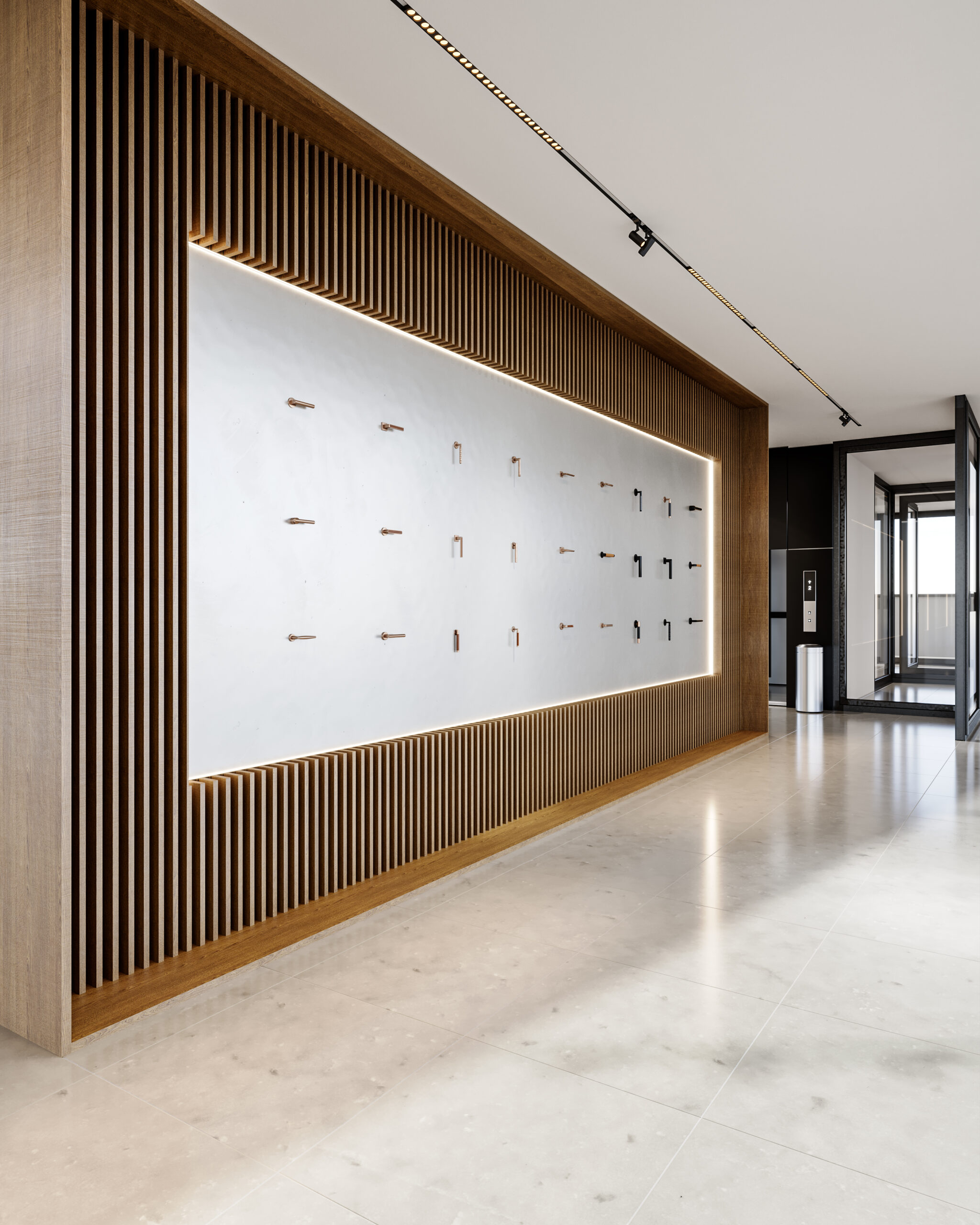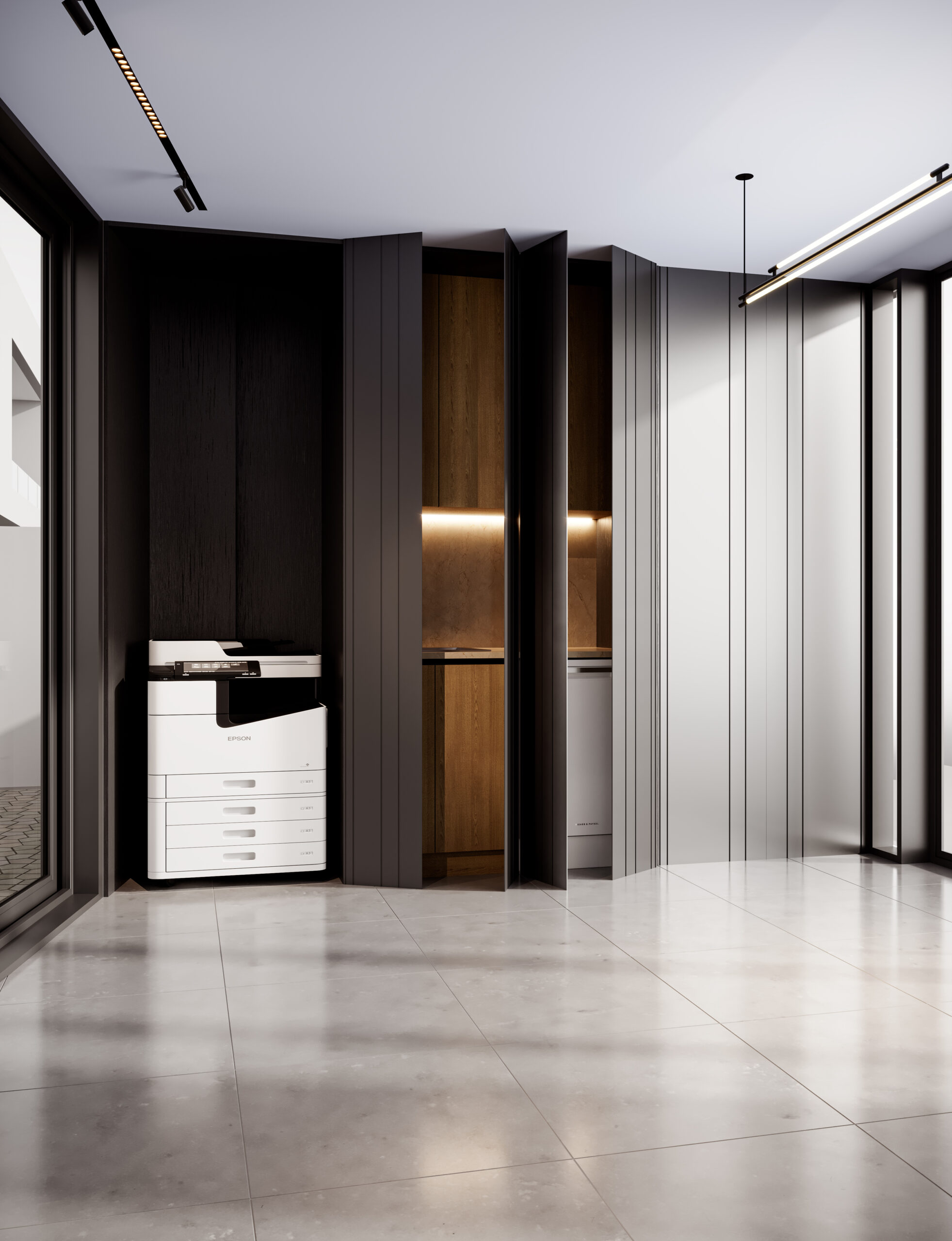 The Poupa Aluminium Nicosia project, designed by Migliore Interiors, showcases a modern commercial interior concept centered around the use of high-quality aluminium elements, functional space planning, and a refined material palette. This project, currently in progress, is presented through detailed 3D visualizations that highlight design intent, material choices, and spatial functionality.