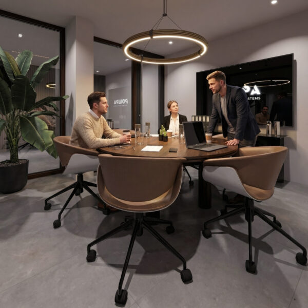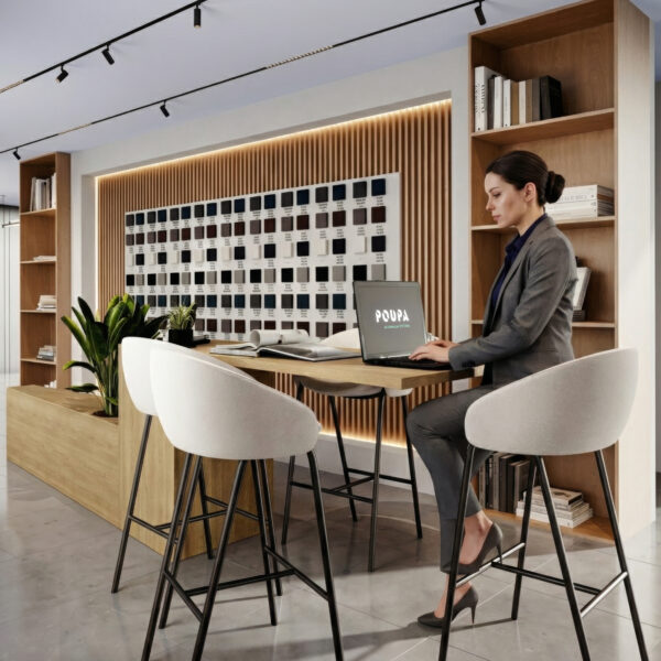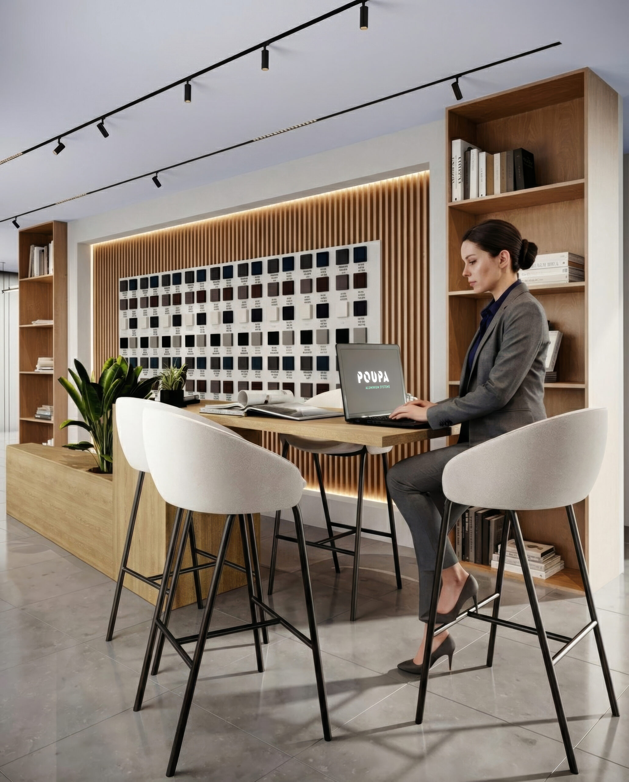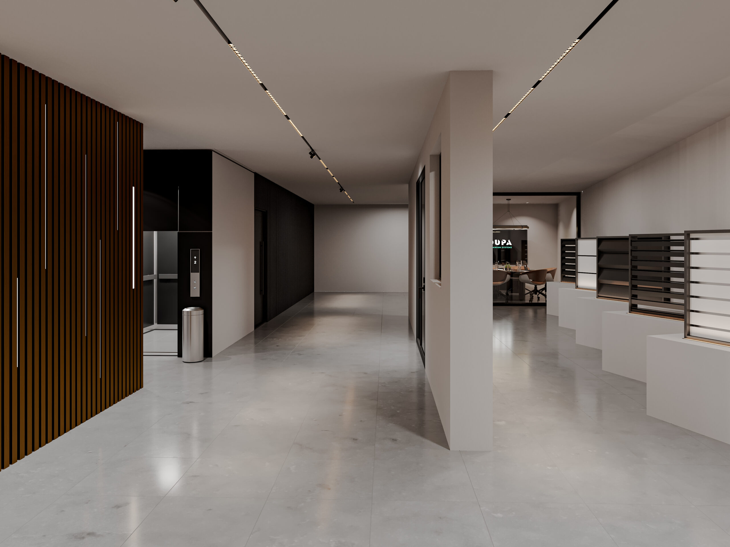 The core objective of the Poupa Aluminium project is to create a stylish, functional, and contemporary commercial interior that supports product display, workflow efficiency, and brand identity.