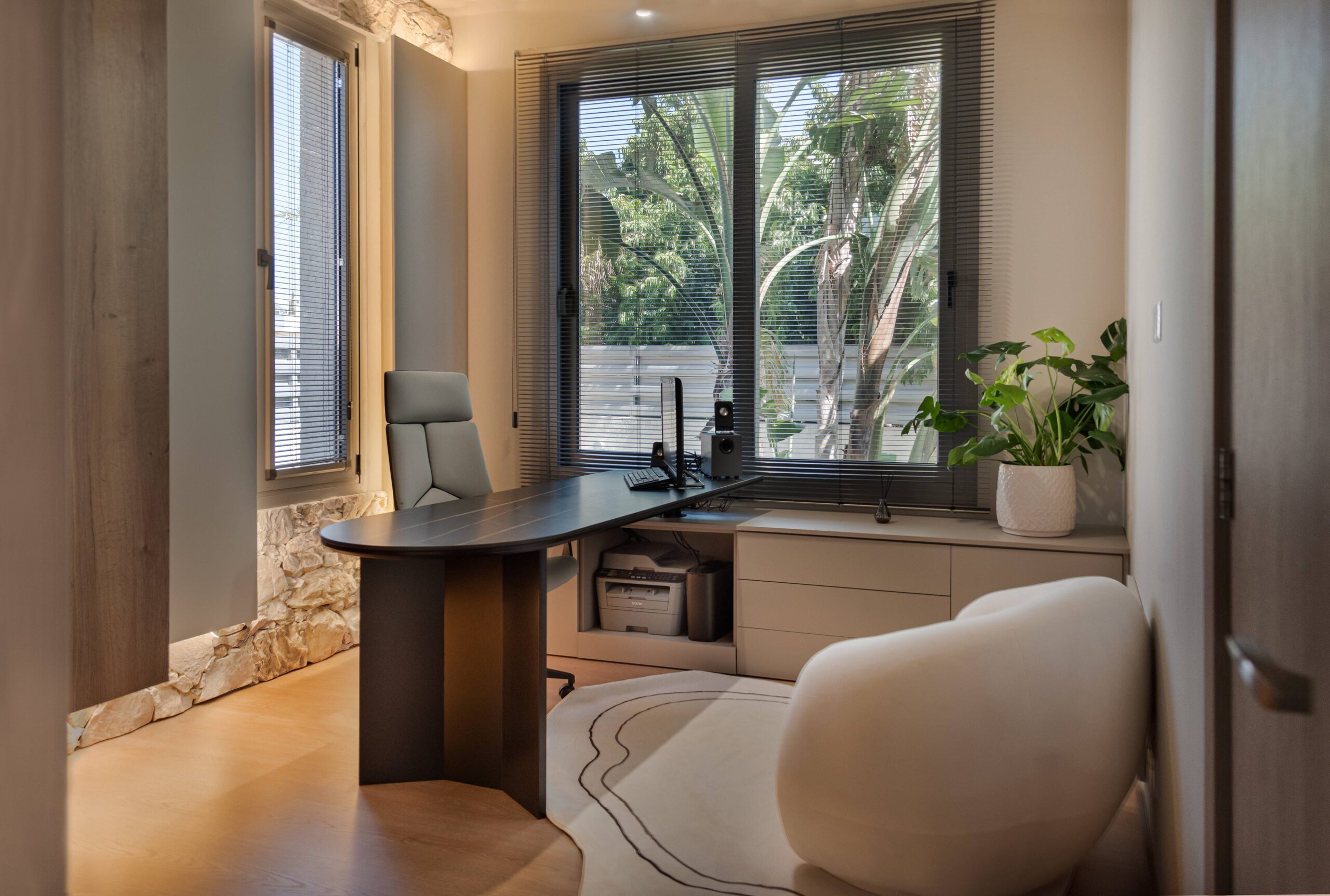 This redesign balances professional efficiency with residential warmth, creating a refined space where focus and comfort coexist.