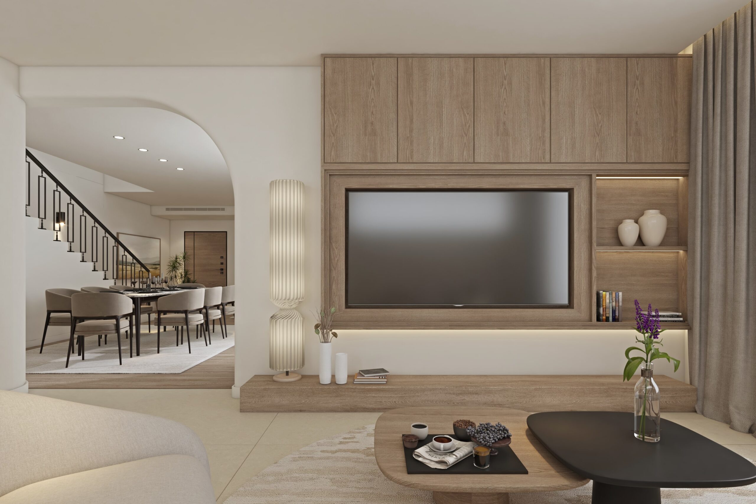 • Warm, Neutral Colour Palette: Soft whites, creamy beiges, and warm wood tones provide a calm, inviting, and timeless atmosphere.