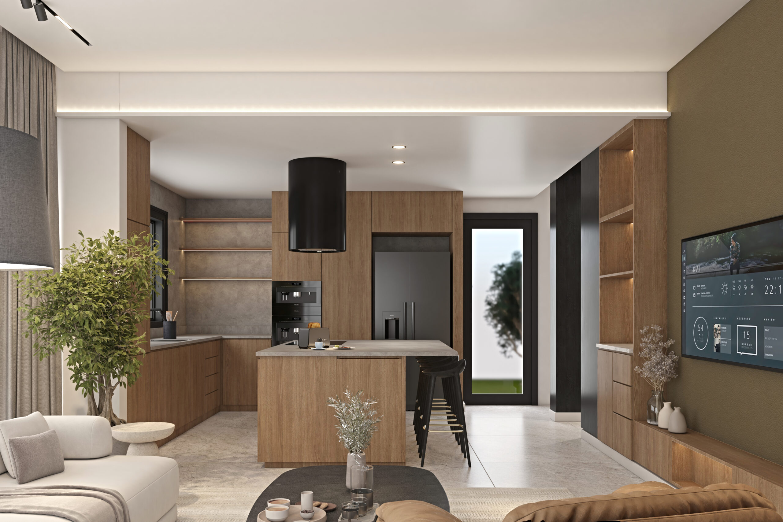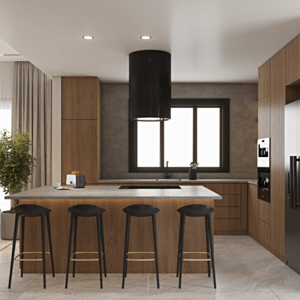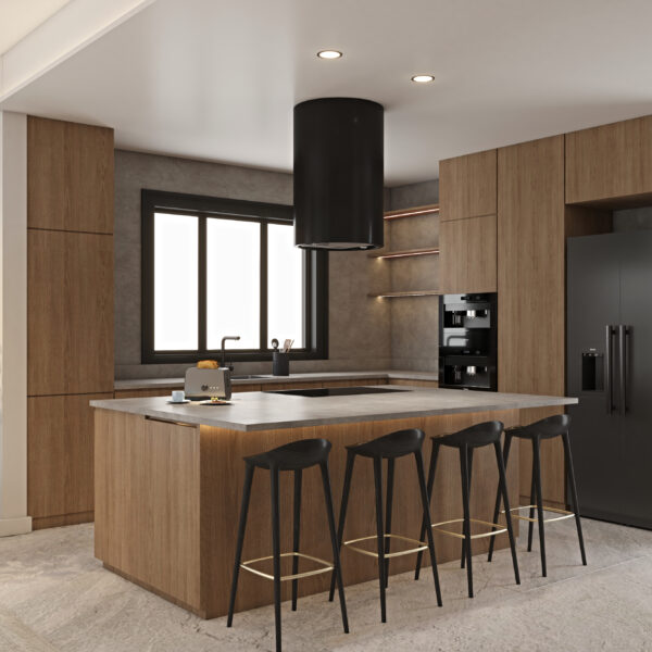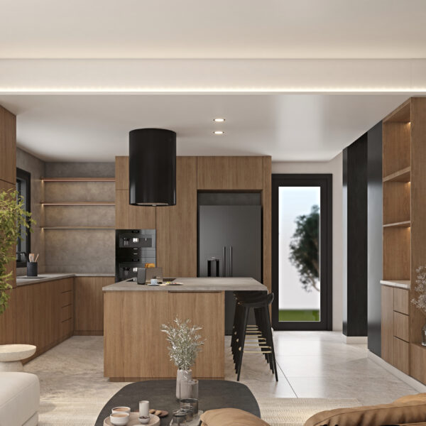 Migliore Nicosia No.23 is a modern residential project in progress in Nicosia, defined by a strong yet elegant material contrast: natural wood blended with black detailing. The 3D visualisations reveal a sophisticated contemporary interior where warmth and depth coexist in perfect balance.